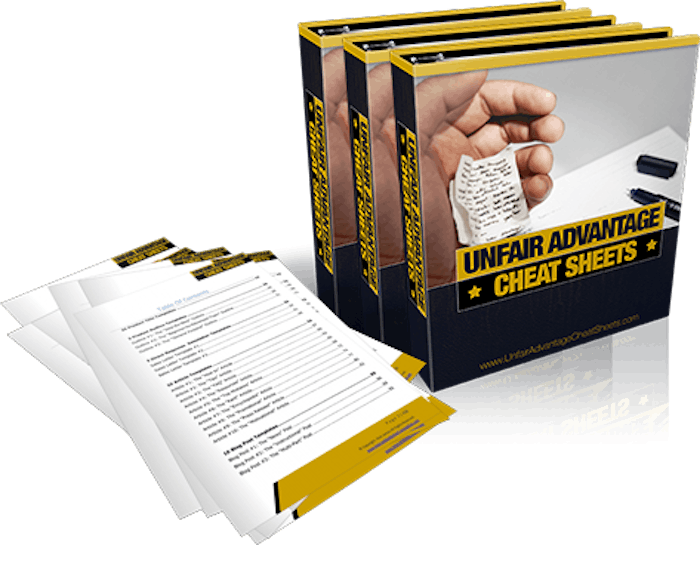 Those sound like pretty bold claims. However within five minutes of downloading the Unfair Advantage Cheat Sheets Package below, you will have full confidence that this is the real deal. And it's something you'll begin using every day in your business...